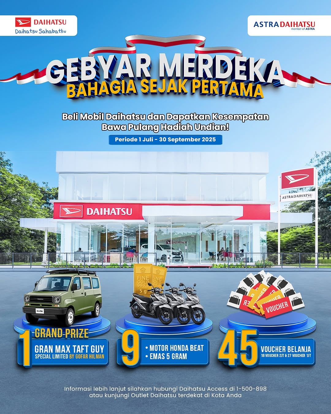 Ayo bawa pulang hadah menarik dan grand prize senilai RATUSAN JUTA RUPIAH di gebyar Merdeka, Bahagia Sejak Pertama !